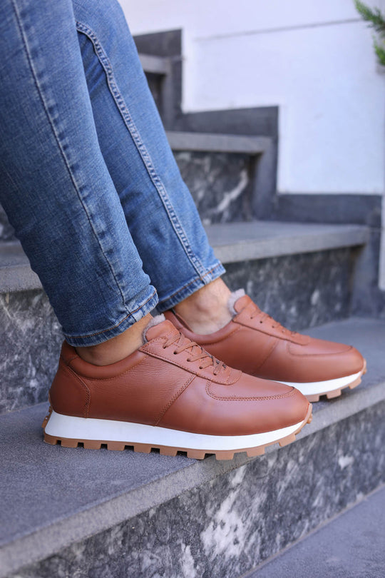 Açık Kahverengi Deri Kalın Tabanlı Spor Ayakkabı - Wessi