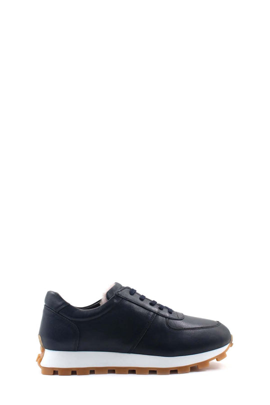Yandan Fermuarlı ve Kürk Astarlı Lacivert Deri Erkek Spor Ayakkabı - Wessi