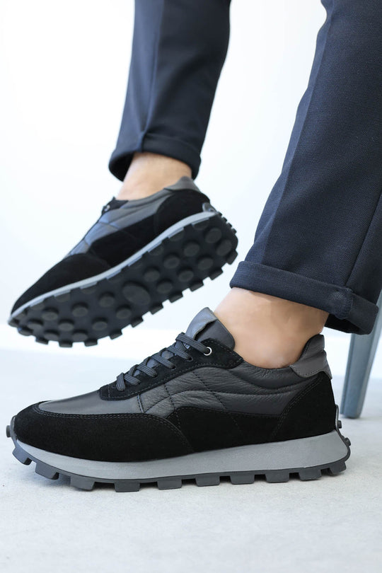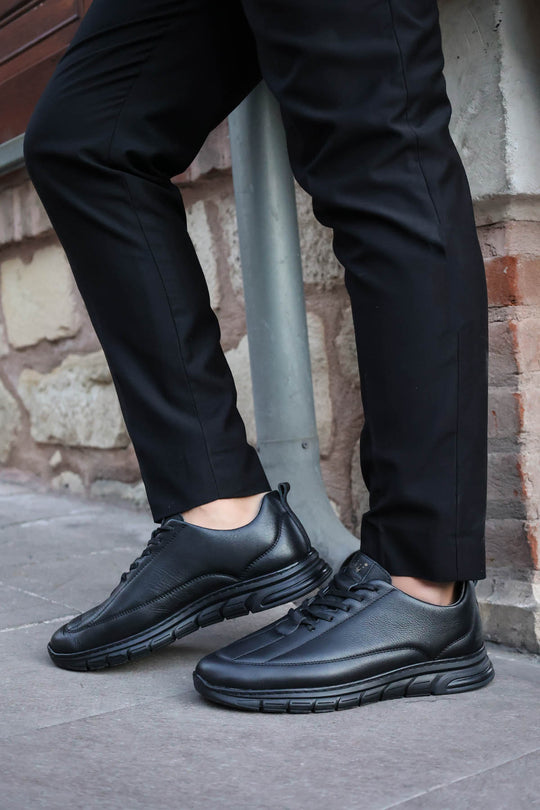 Siyah Deri Günlük Spor Ayakkabı - Wessi