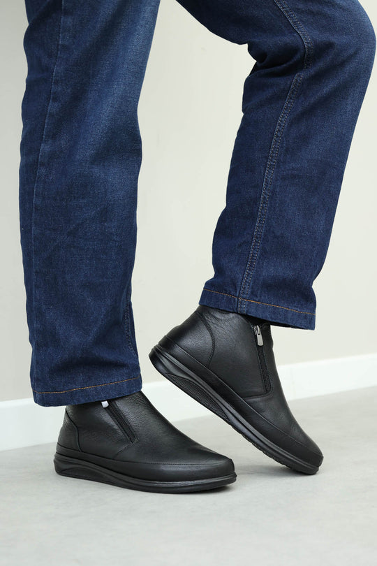 Hakiki Deri Kürklü Erkek Spor Bot 951KMA99 Siyah - Wessi