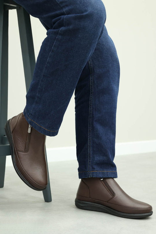 Yandan Fermuarlı ve Kürk Astarlı Kahverengi Deri Erkek Bot - Wessi