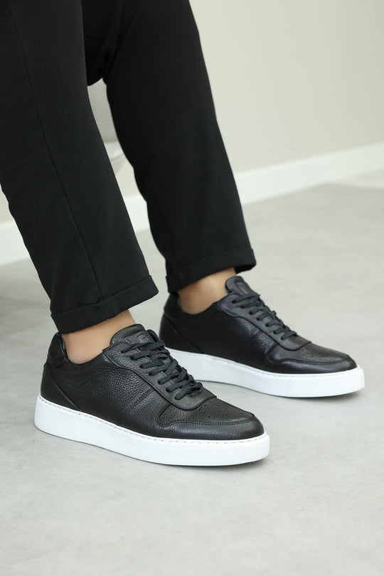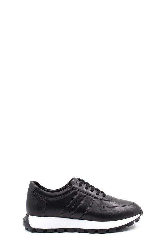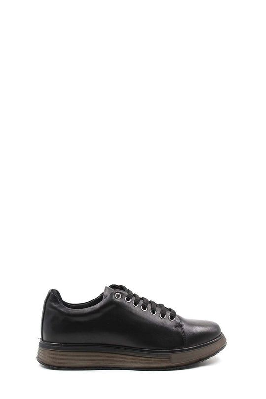 Siyah Deri Yüksek Tabanlı Spor Ayakkabı Wessi