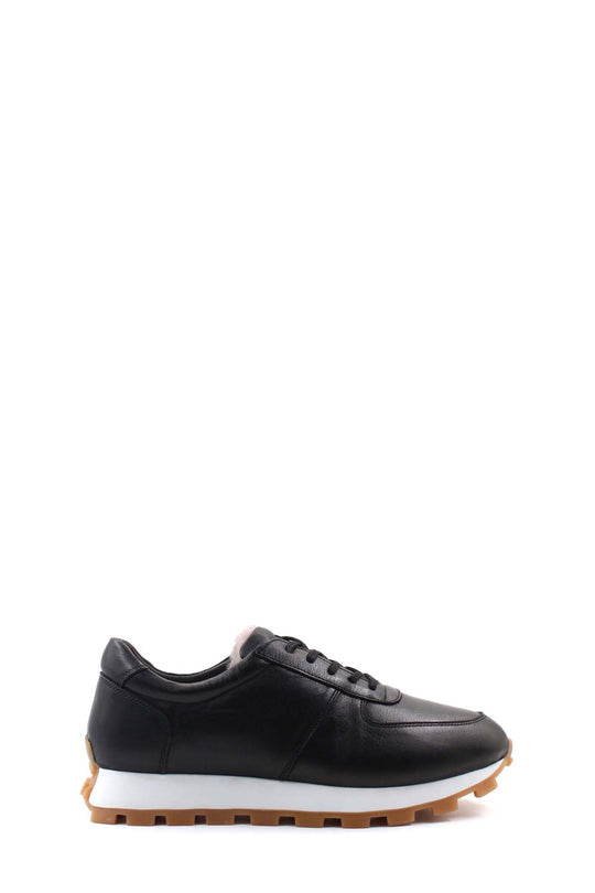 Kauçuk Tabanlı ve Beyaz Orta Tabanlı Siyah Deri Erkek Spor Ayakkabı - Wessi