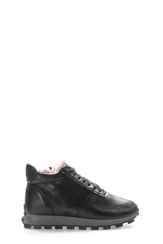 Siyah Deri İçi Kürklü Bağcıklı Dayanıklı Tabanlı Erkek Bot Wessi