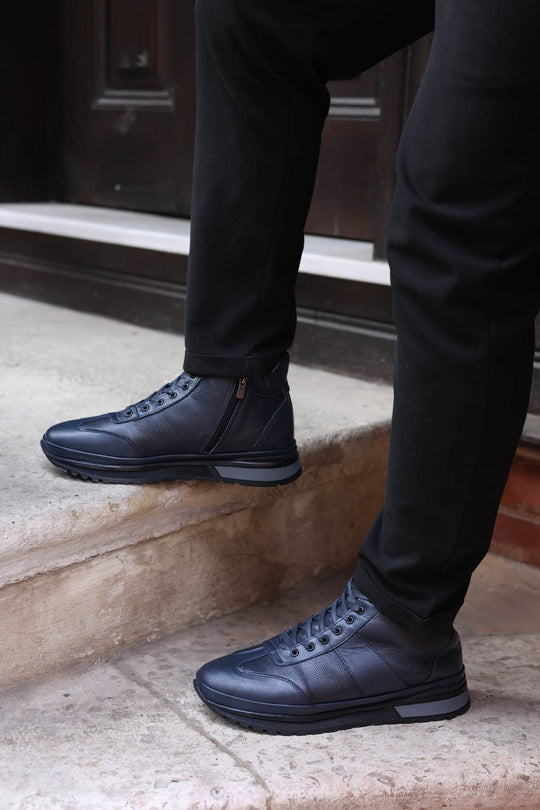 Hakiki Deri Kürklü Erkek Spor Bot 722KMA306 Lacivert - Wessi