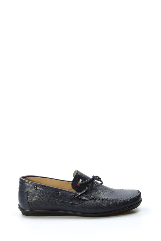 Erkek Lacivert Deri Bağıcıksız Loafer - Wessi