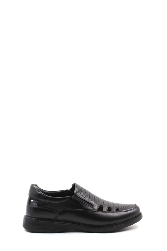 Siyah Deri Erkek Bağıcıksız Ayakkabı - Wessi