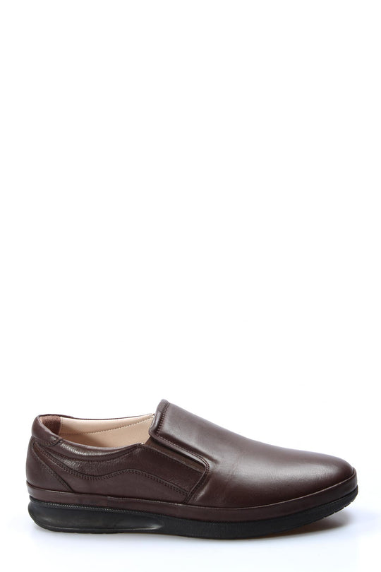 Erkek Kahverengi Deri Bağcıksız Şık Ayakkabı - Wessi