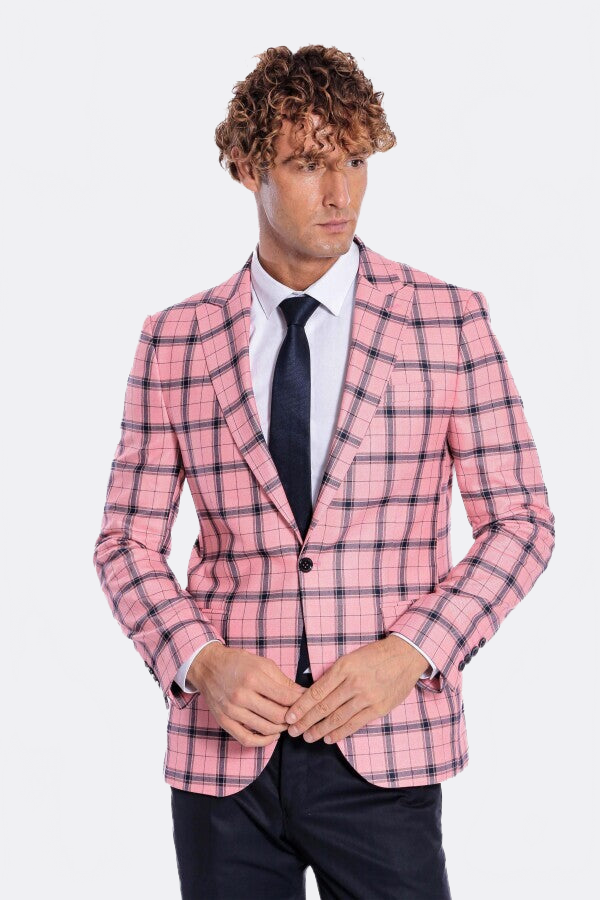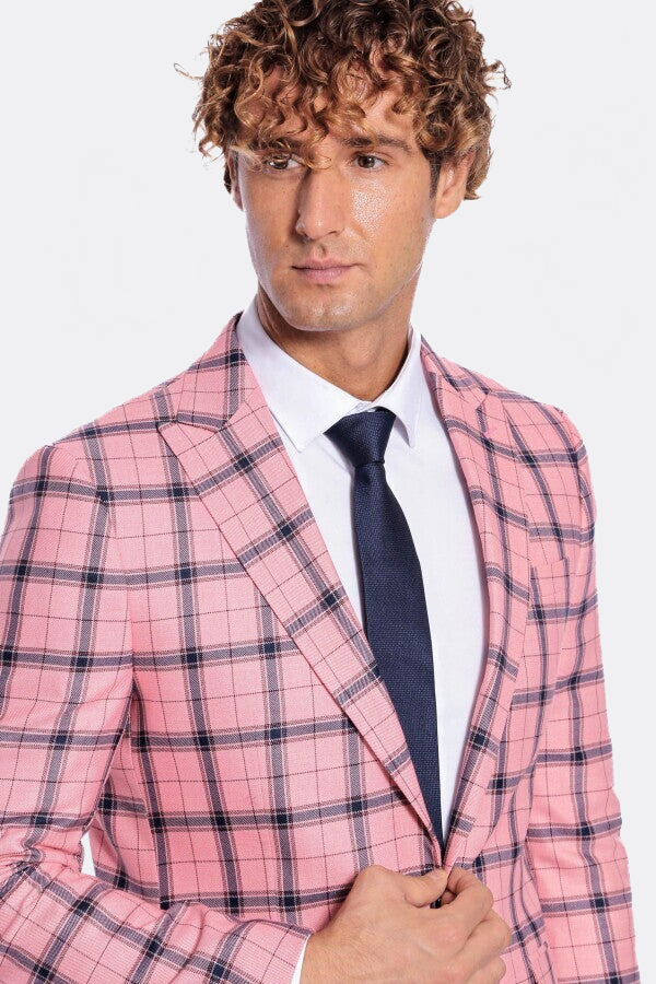 Ekose Desenli Slim Fit Pembe Erkek Ceket - Wessi