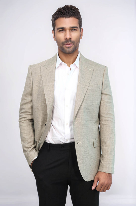 Desenli Slim Fit Krem Erkek Ceket - Wessi