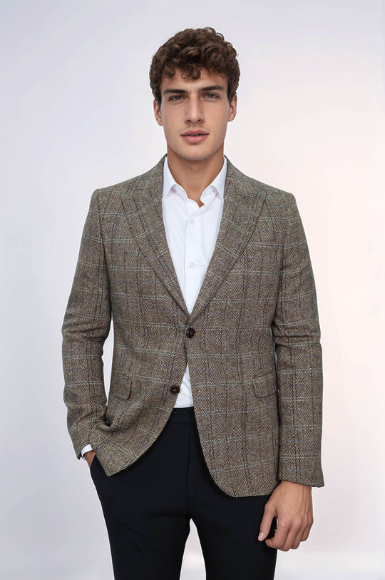 Ekose Desenli Kahverengi Erkek Ceket - Wessi
