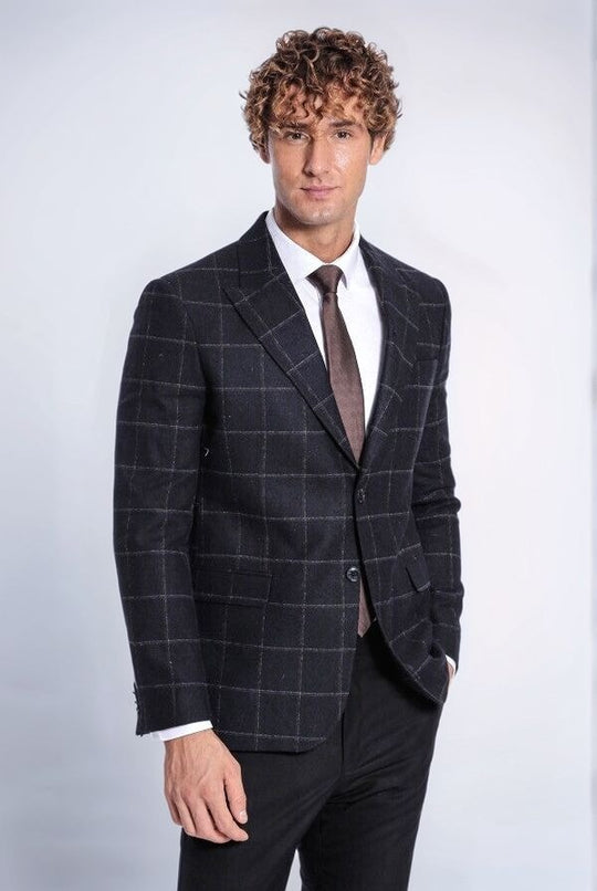 Ekose Desen Slim Fit Siyah Erkek Ceket - Wessi