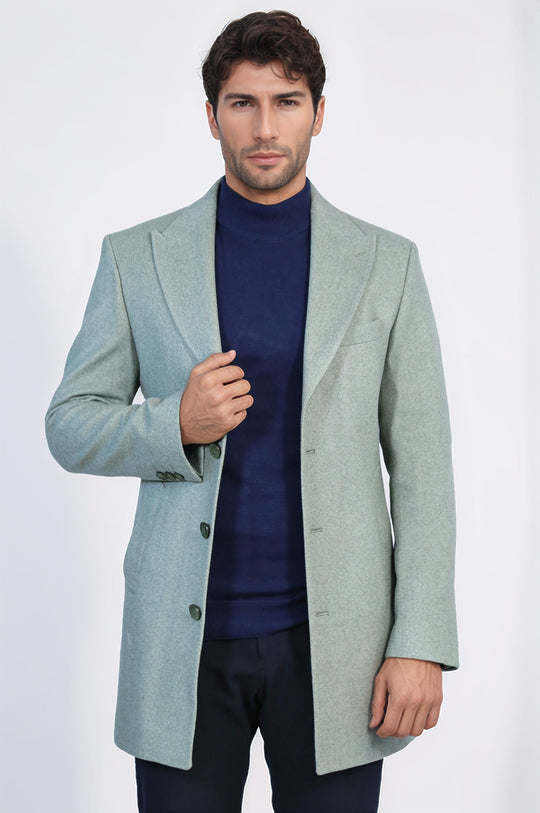 Petrol Yeşili Geniş Yaka Yün Erkek Kaban - Wessi