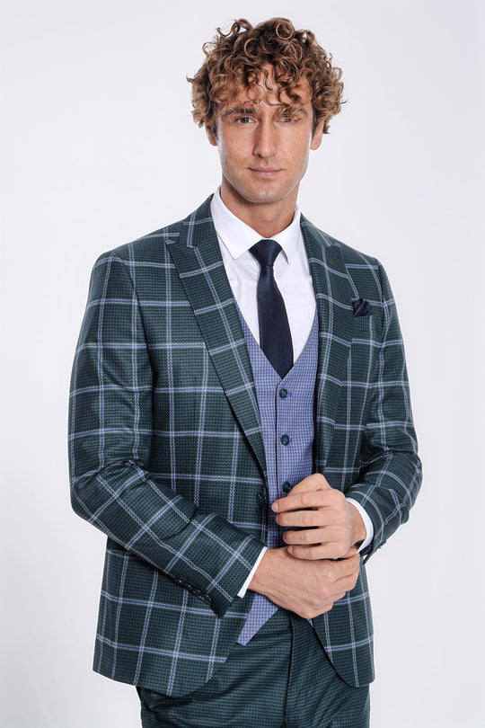 Kazayağı Desenli Yün Yeşil Erkek Ceket - Wessi