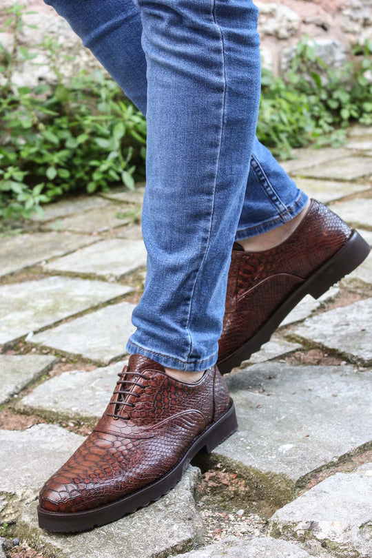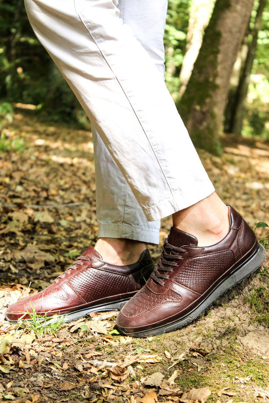 Erkek Kahverengi Timsah Desenli Deri Spor Ayakkabı - Wessi
