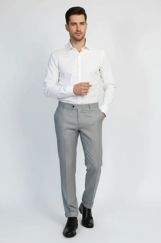 Erkek pantolonlarının popüler stillerinden biri de klasik elbise pantolonudur. Bu pantolonlar, farklı durumlara ve mevsimlere uyacak şekilde çeşitli renk ve yün, pamuk veya keten gibi malzemelerle sunulur. Daha rahat bir görünüm için elbise pantolonlarını eşleşen bir ceketle eşleştirebilir veya gündelik bir gömlekle giydirebilirsiniz.