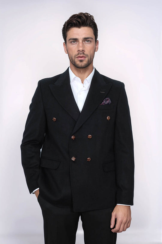 Geniş Sivri Yakalı Kadife Siyah Erkek Ceket - Wessi
