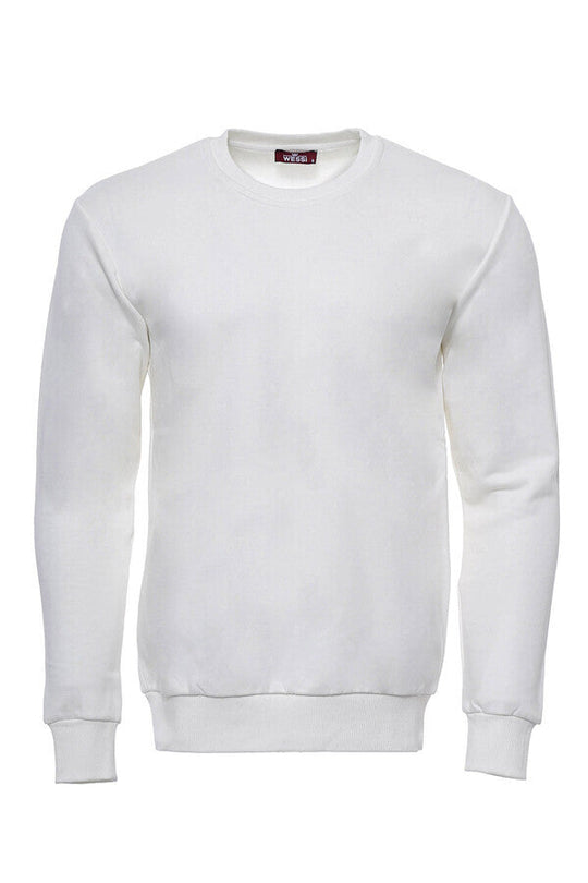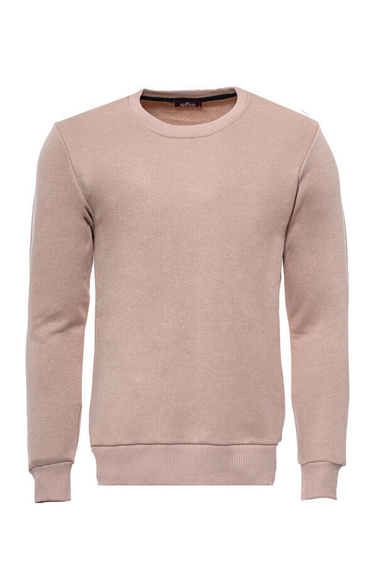 Krem Erkek Bisiklet Yaka Desensiz Sweatshirt - Wessi