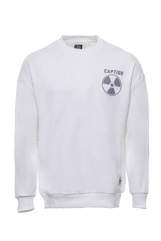 Beyaz Baskılı Desenli Bisiklet Yaka Sweatshirt - Wessi