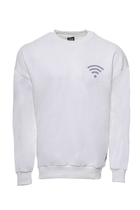 Bisiklet Yaka Beyaz Ön Baskılı Erkek Sweatshirt - Wessi