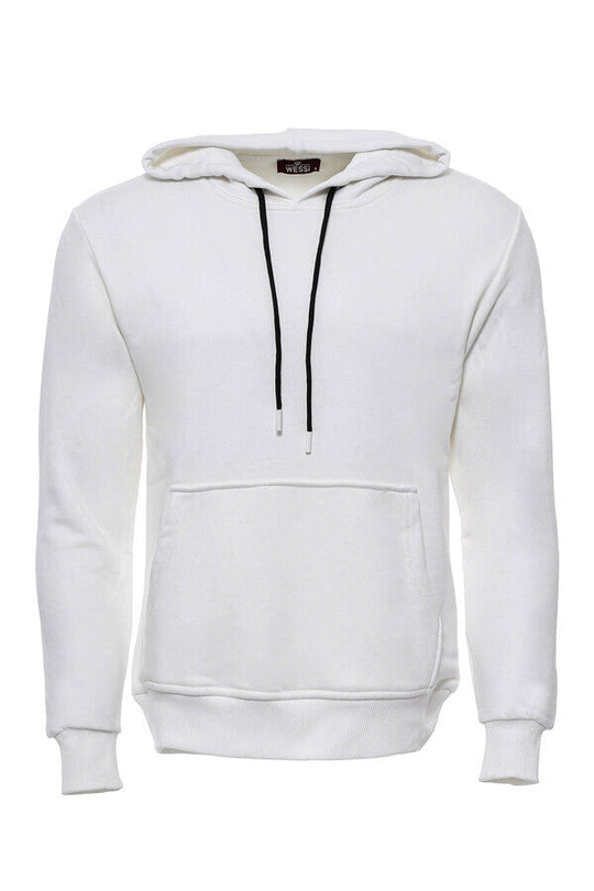 Kapşonlu Cepli Düz Krem Erkek Sweat - Wessi