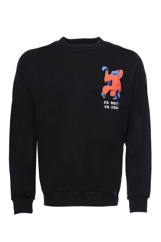 Siyah Bisiklet Yaka Baskı Detaylı Sweatshirt - Wessi