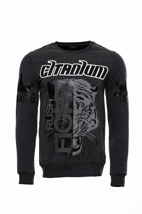 Gri Taşlı Baskılı Kapşonşlu Sweatshirt - Wessi