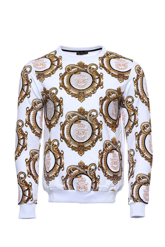 Beyaz Baskılı Taşlı Bisiklet Yaka Sweatshirt - Wessi