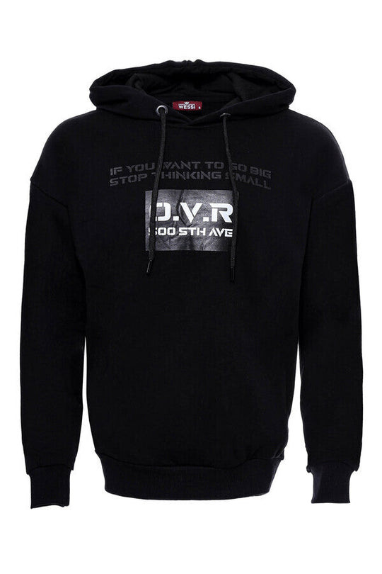Siyah Kapşonlu Baskılı Sweatshirt - Wessi
