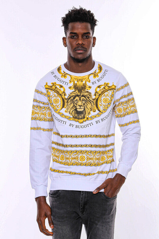 Hardal Baskılı Taşlı Bisiklet Yaka Sweatshirt - Wessi
