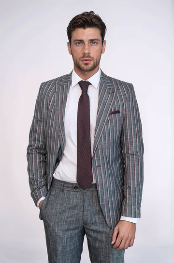 Çizgili Ceket Pantolon Gri Erkek Takım Elbise - Wessi