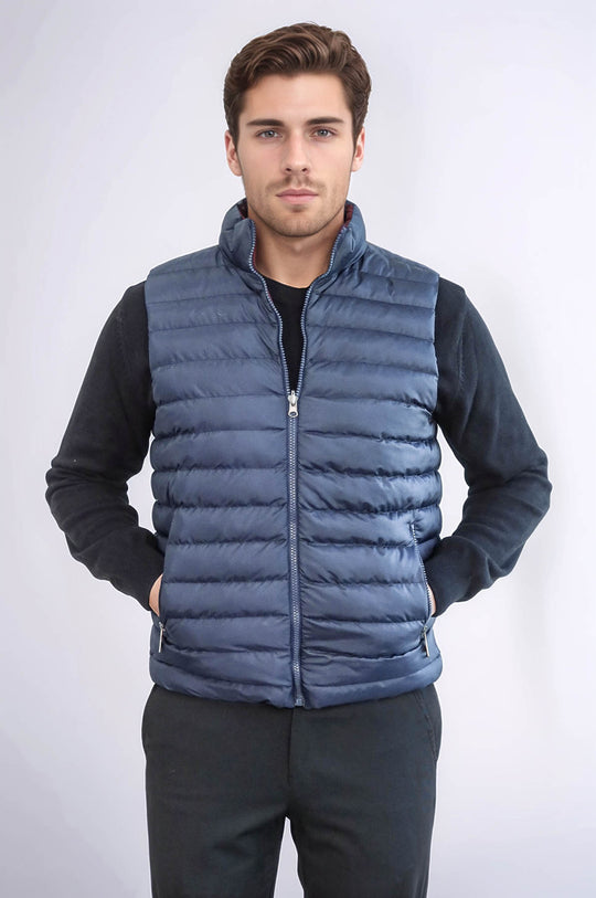 Çift Taraflı Kapitone Dik Yaka İndigo Mavi Erkek Kışlık Şişme Yelek - Wessi