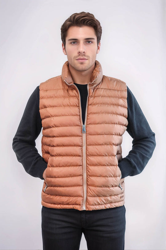 Kapitone Fermuarlı Açık Kahverengi Erkek Şişme Yelek - Wessi
