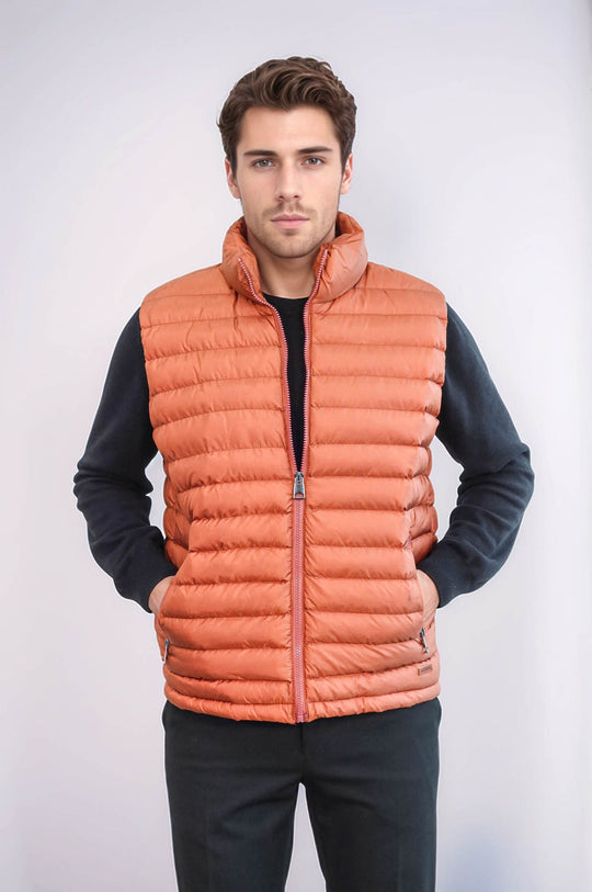 Kapitone Fermuarlı Turuncu Erkek Şişme Yelek - Wessi