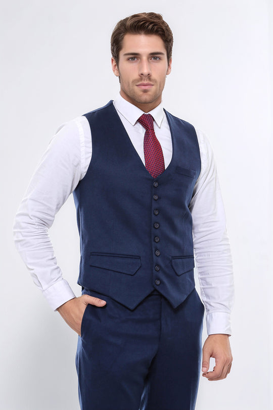 8 Düğmeli Düz Lavcivert Erkek Yelek - Wessi