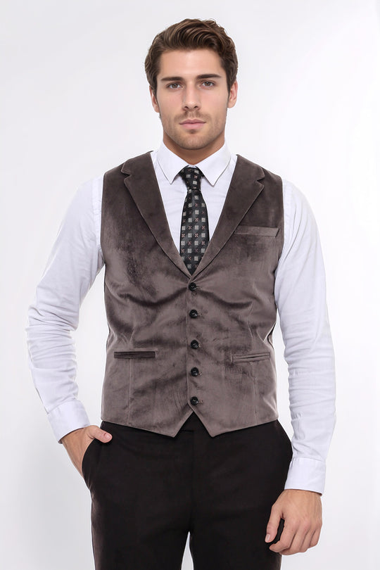 Kahverengi Ceket Yaka Slimfit Tek Yelek - Wessi