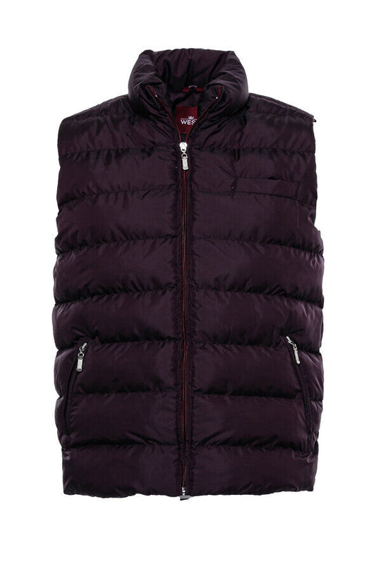 Çift Taraflı Kapitone Şişme Dik Yaka Bordo Erkek Kışlık Yelek - Wessi