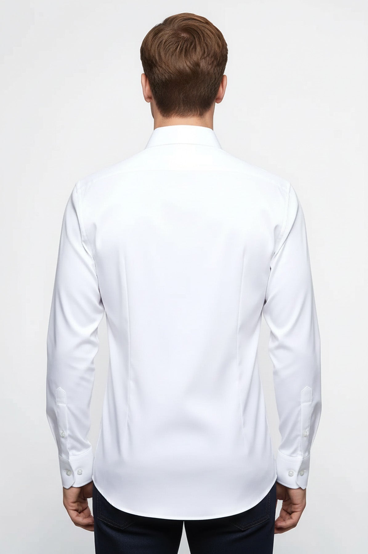 Pamuk Saten Slim Fit Beyaz Erkek Gömlek - Wessi