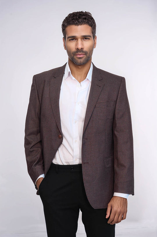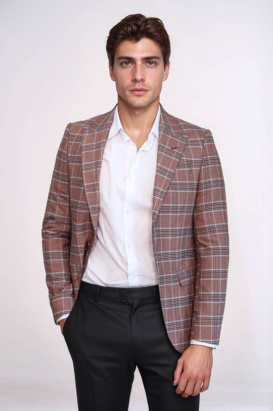 Ekose Desenli Kahverengi Erkek Ceket - Wessi