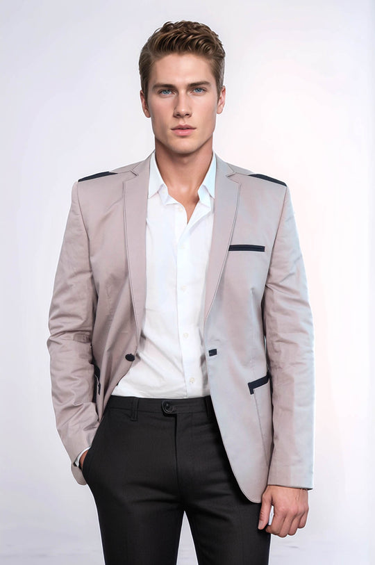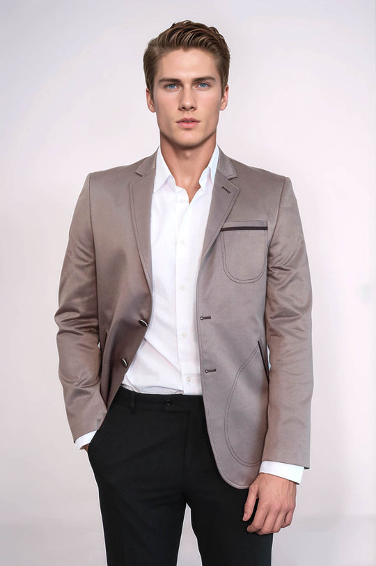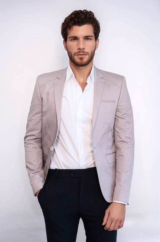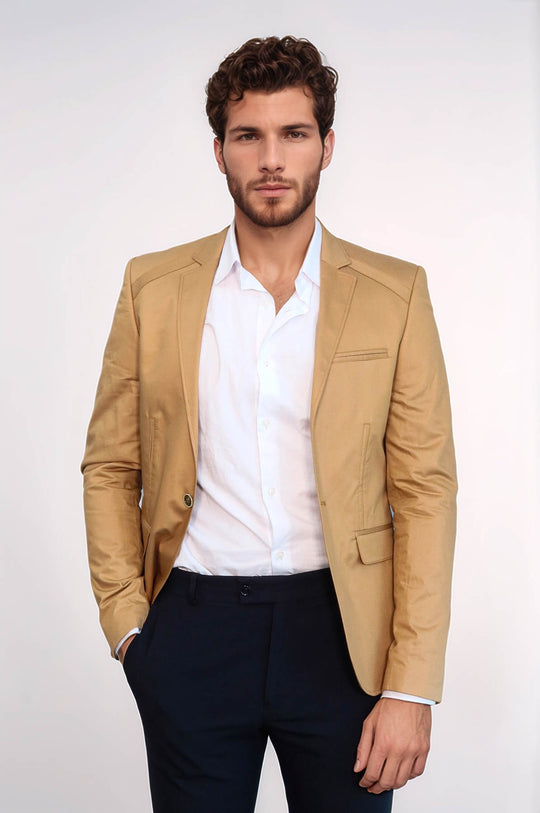 2 Düğmeli Yama Cepli Bej Erkek Ceket - Wessi