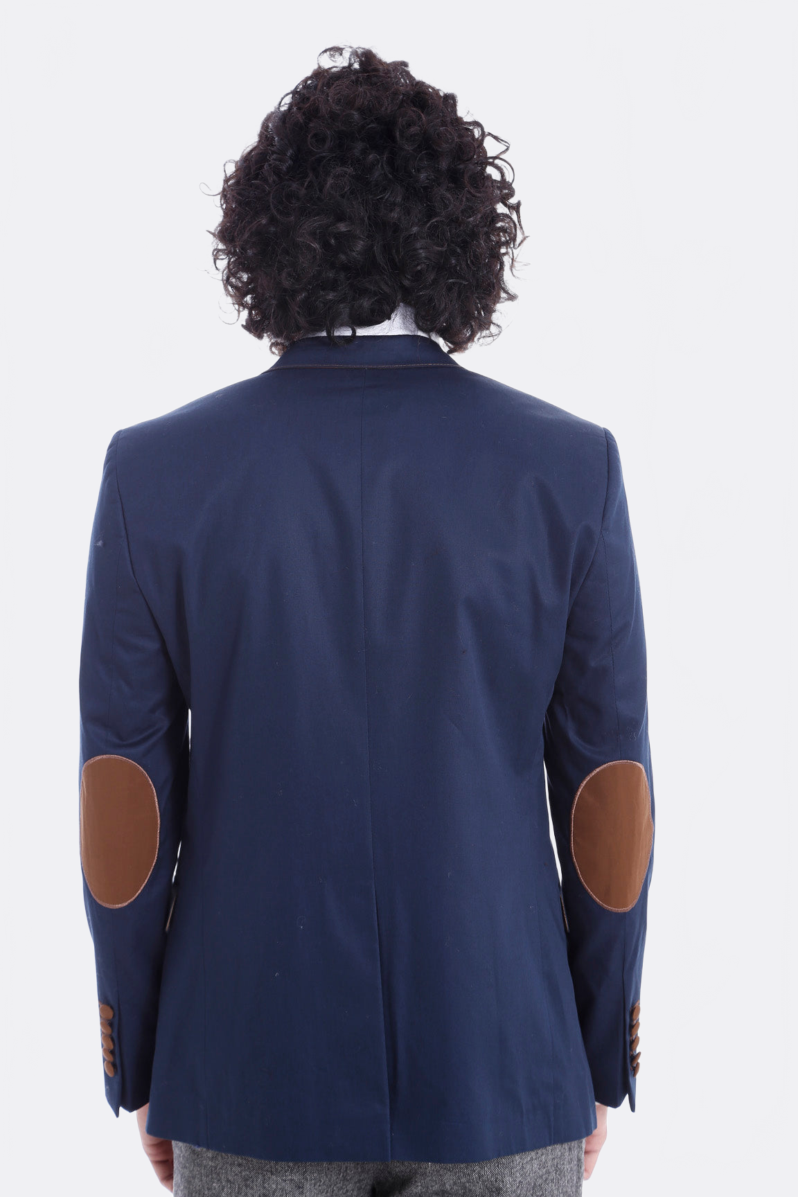 2 Düğmeli 3 Cepli Armalı Pamuk Erkek Mavi Ceket - Wessi