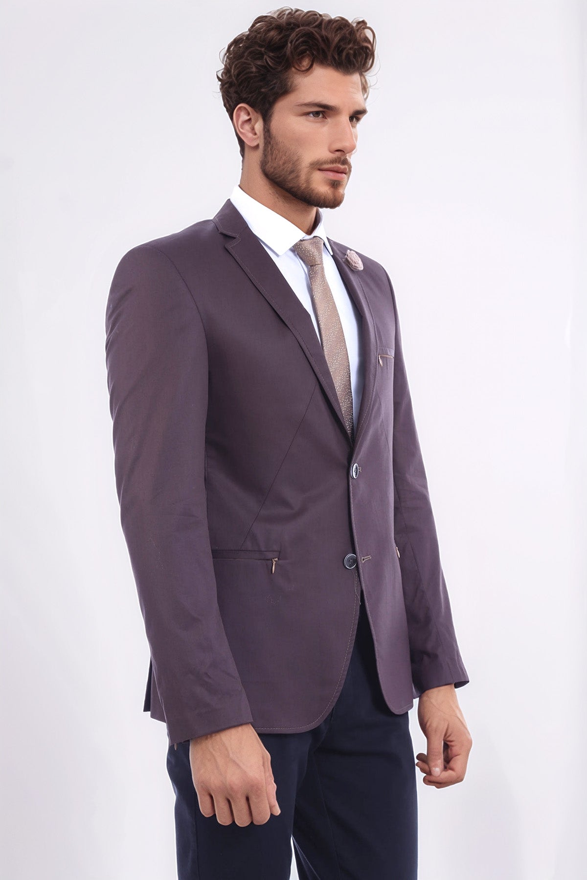 2 Düğmeli Cepleri Fermuarlı Erkek Kahverengi Ceket - Wessi