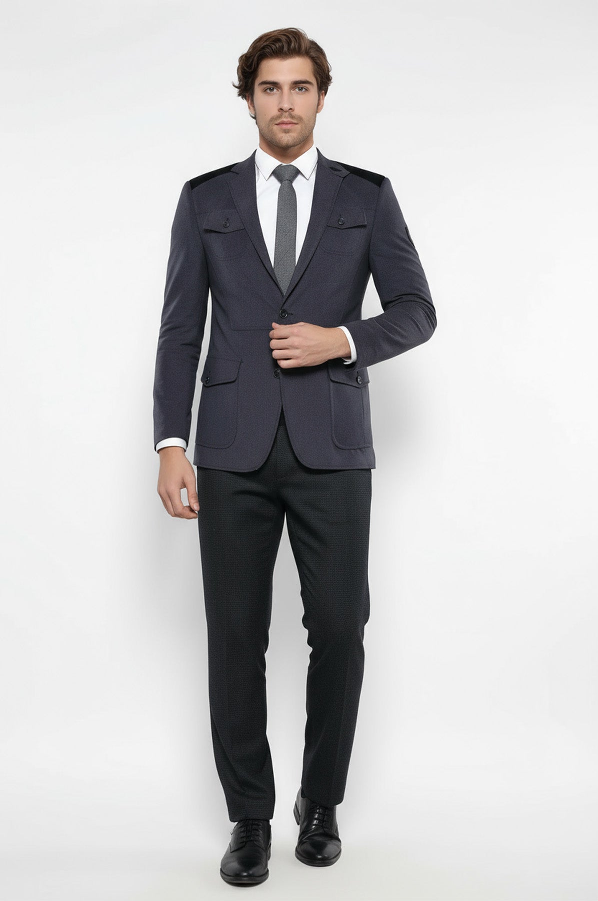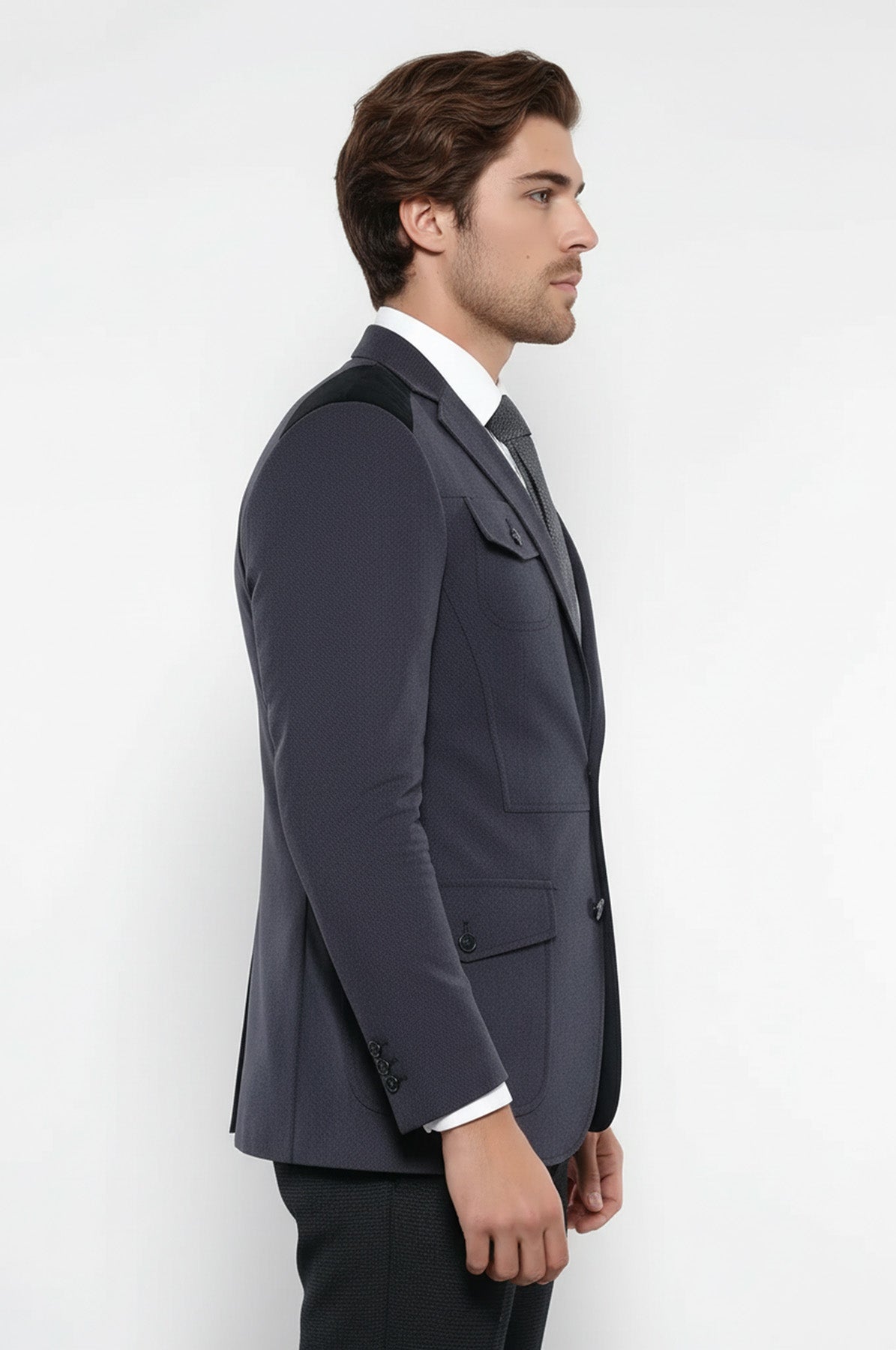 2 Düğmeli Cepli Kadife Antrasit Ceket -Wessi