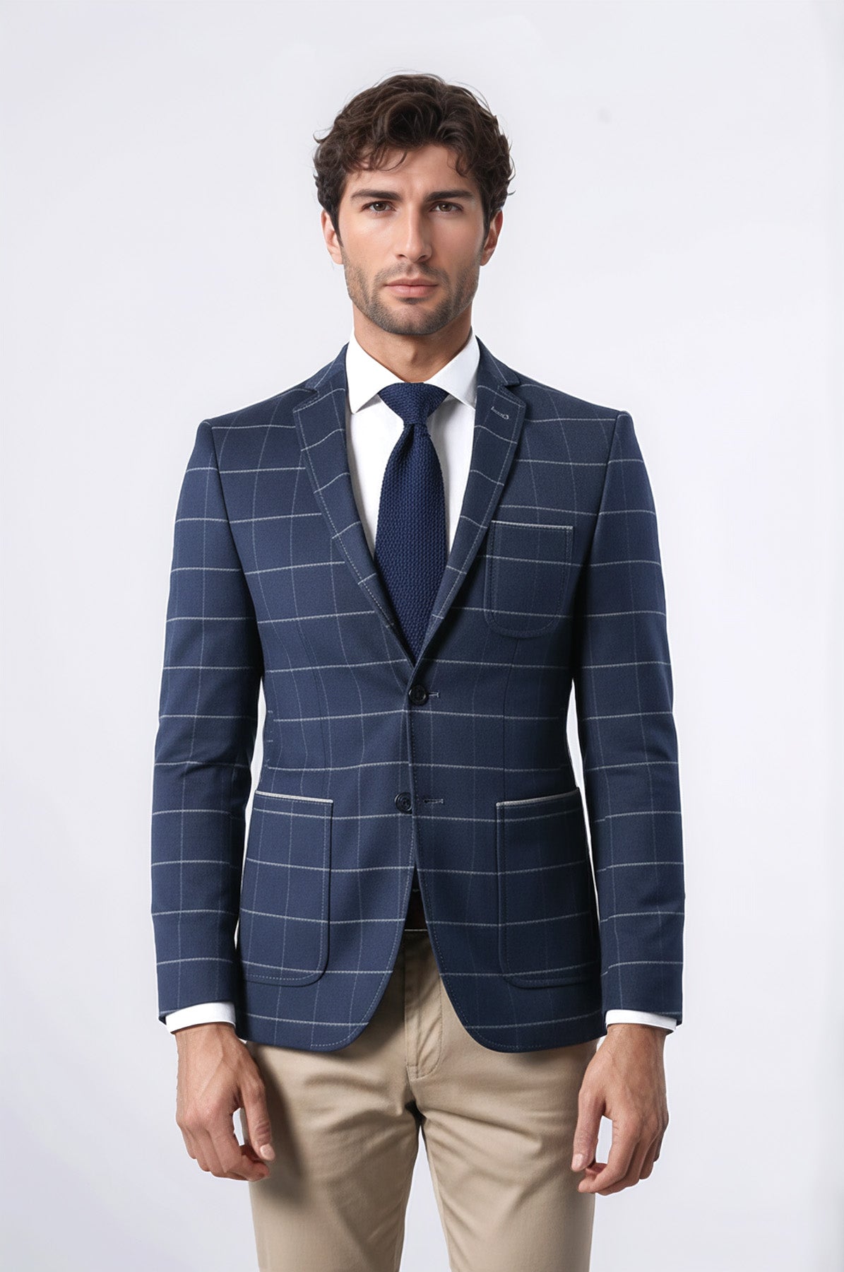 2 Düğmeli Ekose Slim Fit Lacivert Ceket | Wessi