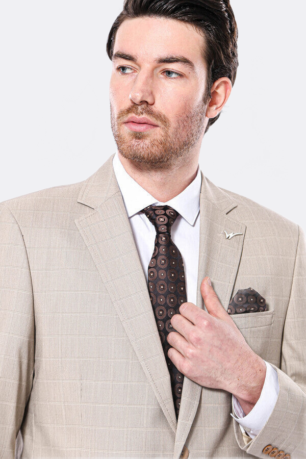 4 Drop Klasik Kesim Ekose Bej Takım Elbise - Wessi