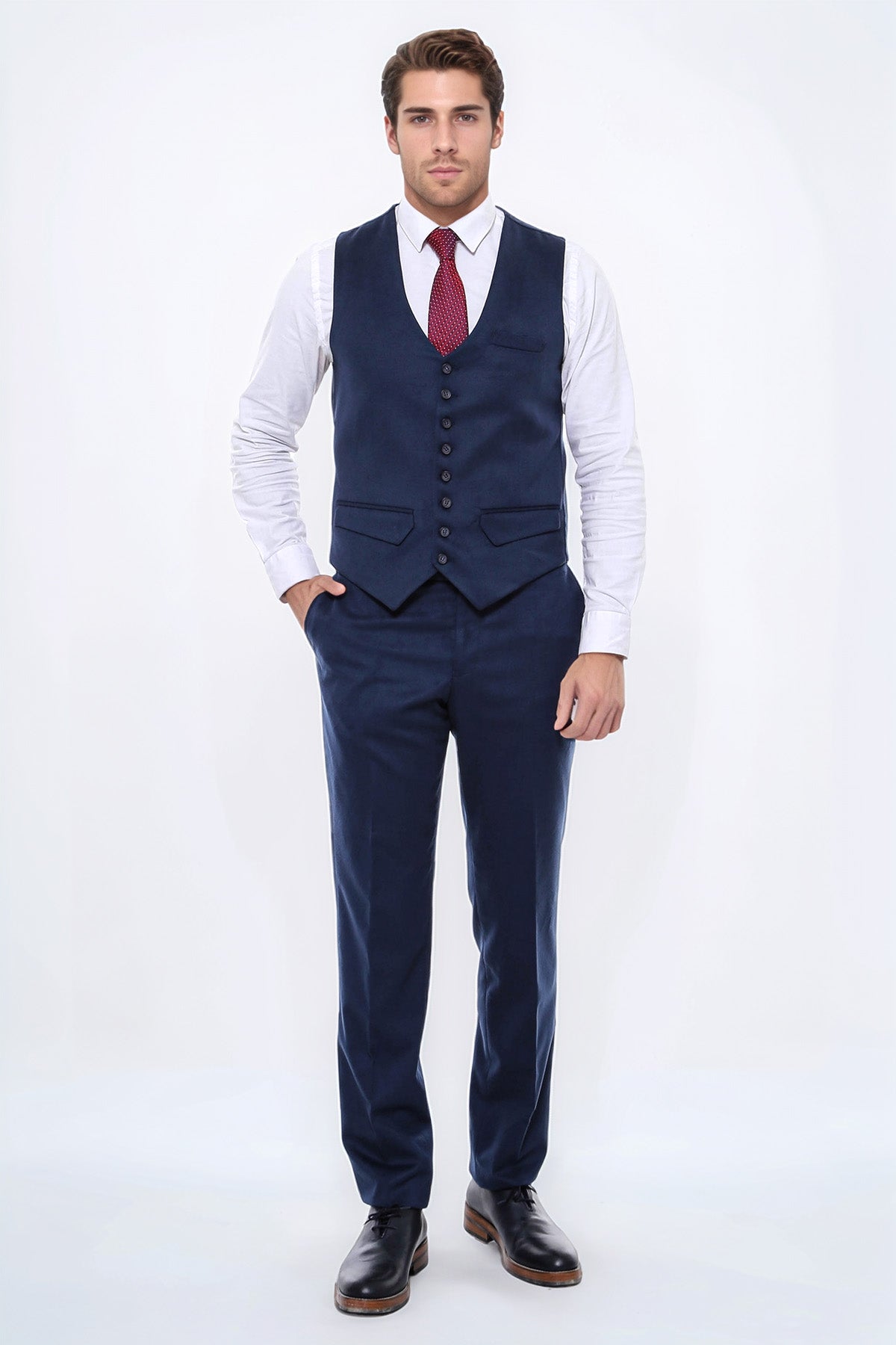 8 Düğmeli Düz Lavcivert Erkek Yelek - Wessi