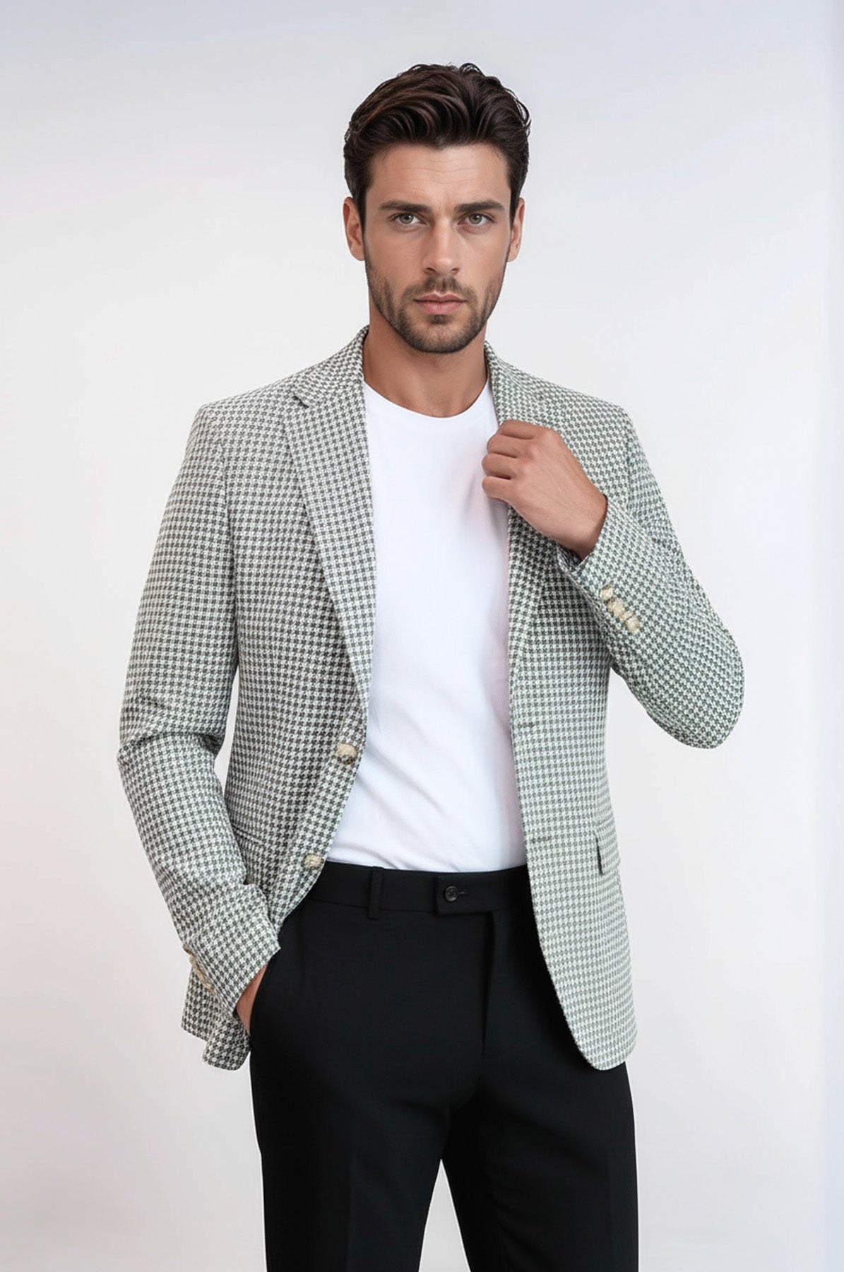 Bu açık gri kazayağı desenli blazer ceketi, siyah, lacivert veya bej pantolonlarla kombinleyerek zarif ve modern bir tarz oluşturabilirsiniz. İster iş ortamında ister özel davetlerde kullanın, Wessi’nin kaliteli ve şık tasarımıyla fark yaratın.