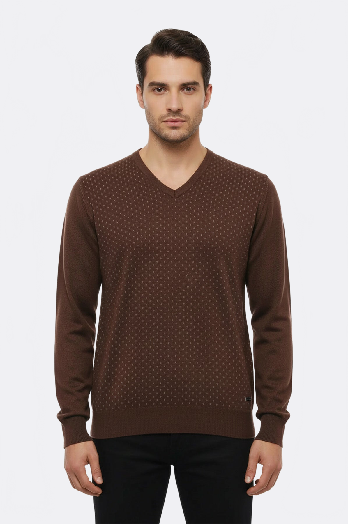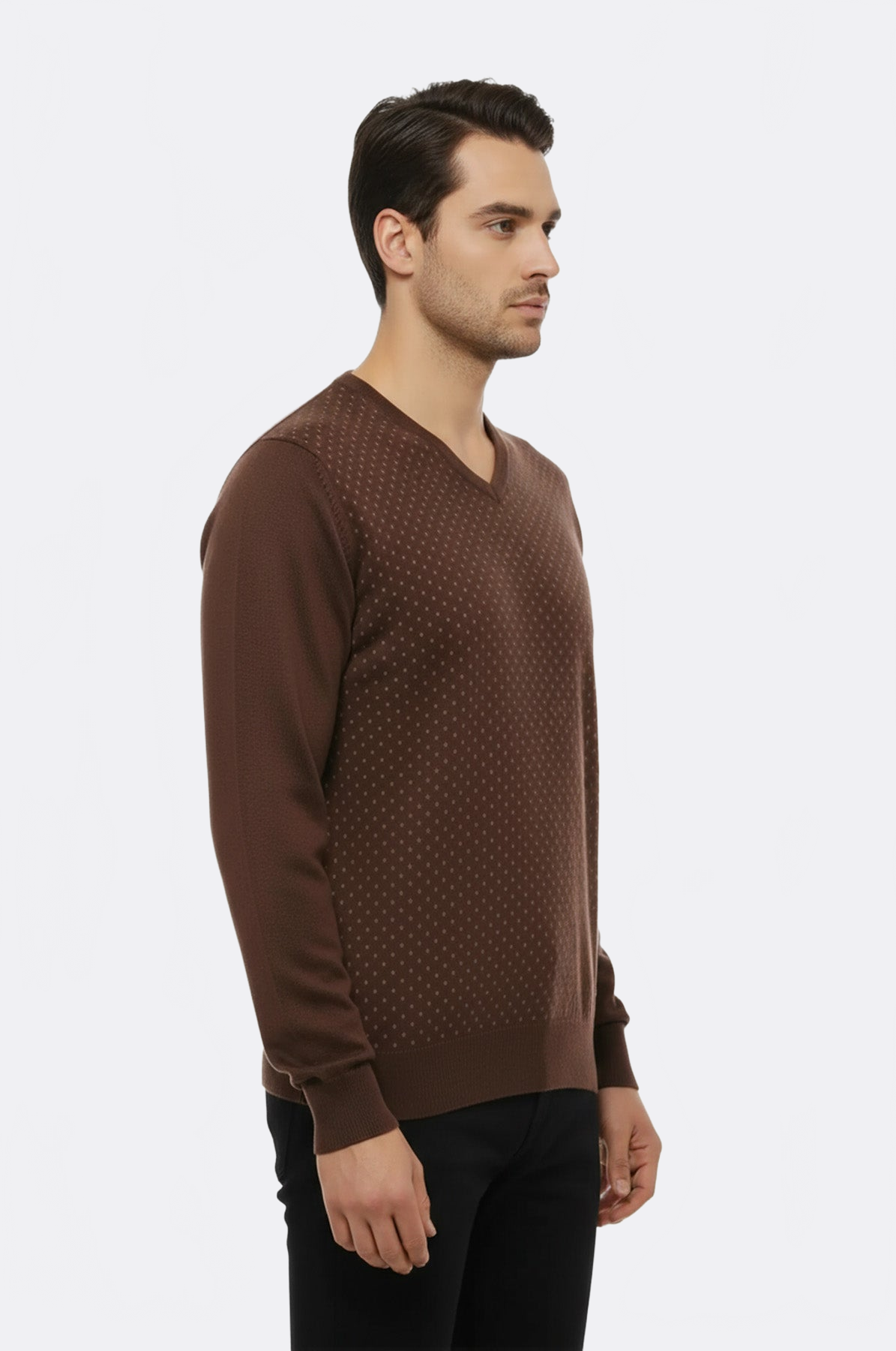 Açık Kahve Nokta Desenli V Yaka Kazak - Wessi