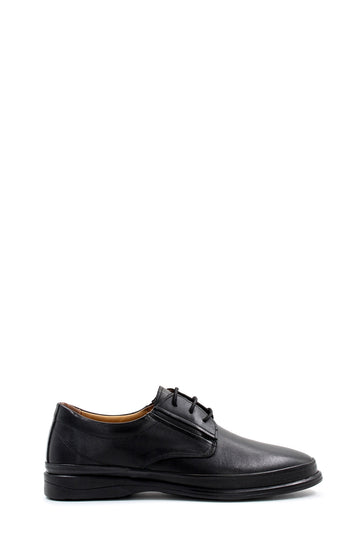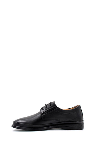 Bağcıklı Tasarımlı ve Rahat Tabanlı Erkek Klasik Siyah Deri Elbise Ayakkabı - Wessi