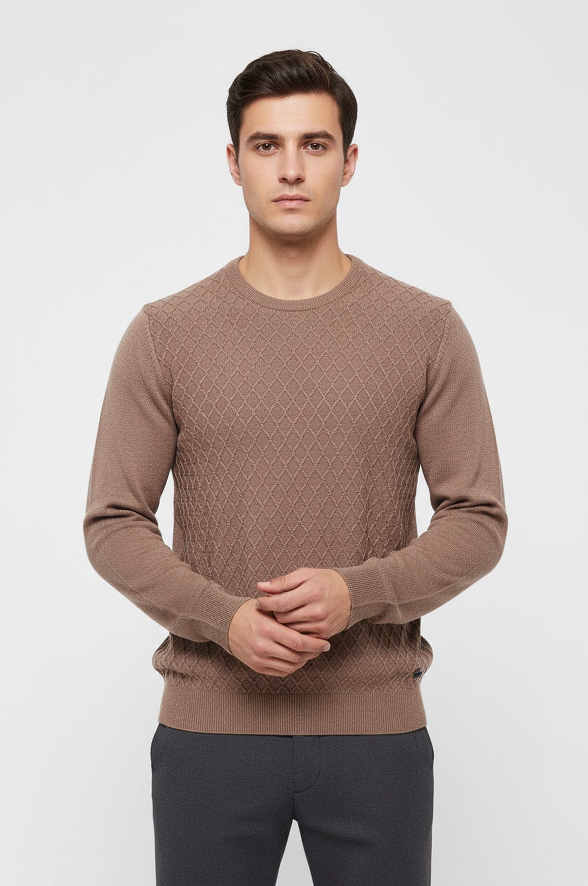 Bej Baklava Desenli Bisiklet Yaka Kazak - Wessi